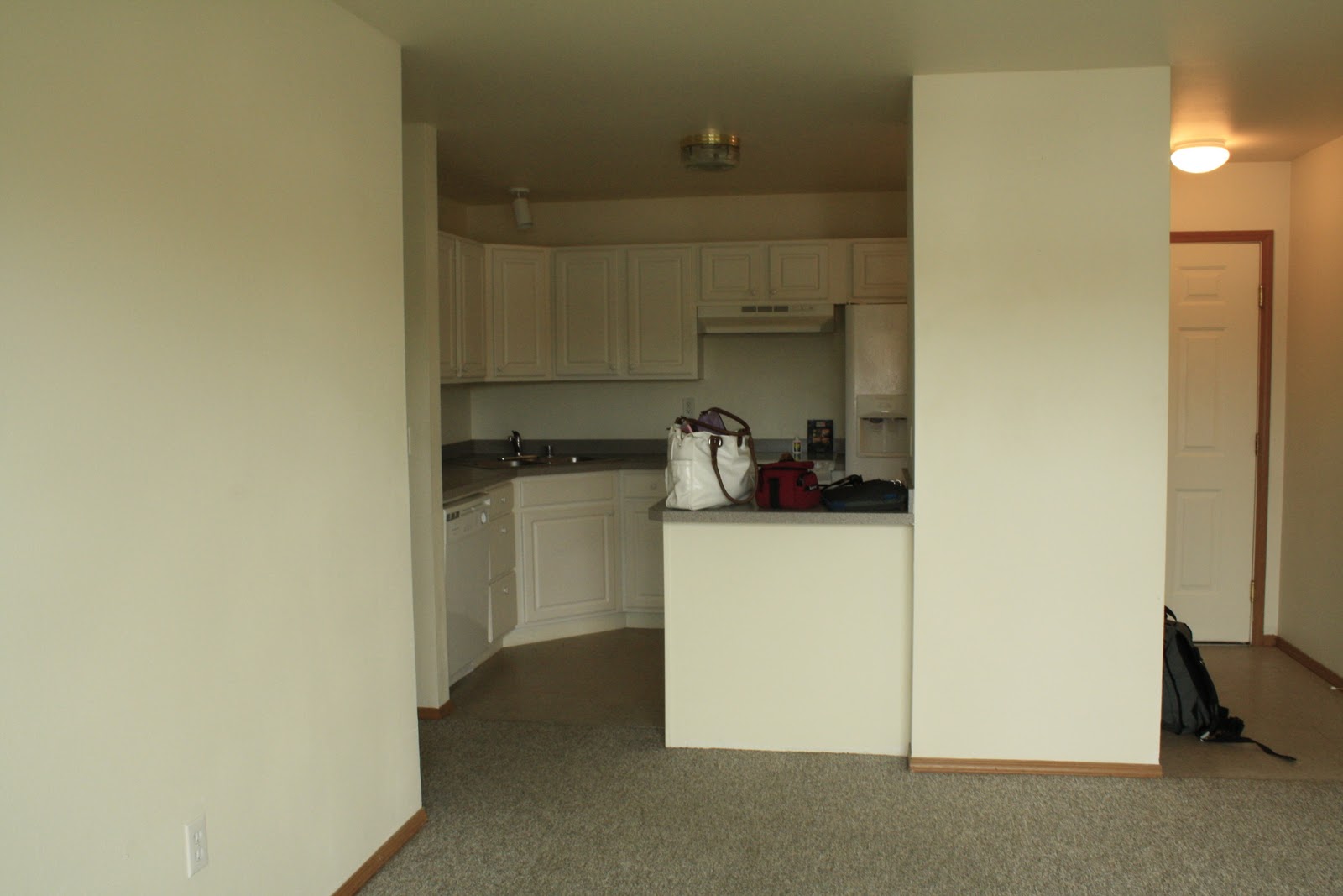 It is a pretty basic apartment with 1 bath and 2 bedrooms. There is however a HUGE walk in closet in the hall way that is practically the size of a third bedroom- this is perfect as our bike room.